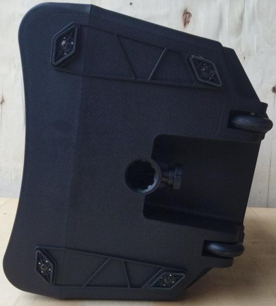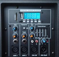 Активная АС, 15" (катушка 3") + 44мм (1,75"). Раздельные усилители класса АВ (TOSHIBA SA1943*2SC5200), макс 1200Вт (1000Вт + 200Вт), опционально - до 1600Вт, USB / SD / Bluetooth / FM + функция внутренней записи, поканальный ревер, пульт. 5-ти полосный эквалайзер, ВЕНТИЛЯТОР, транспортные колеса