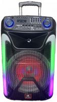 Активная АС, 12" (катушка 2,5") + 34мм (1,35"). Раздельные усилители класса АВ (TOSHIBA SA1943*2SC5200), макс 800Вт (650Вт + 150Вт), опционально - до 1200Вт, USB / SD / Bluetooth / FM + функция приоритета микрофона, внутренней записи, ревер, пульт. 5-ти полосный эквалайзер, транспортные колеса. Опция: транспортный чехол.