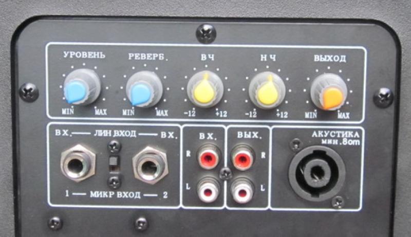 Активная АС, 12" (катушка 2,5") + 34мм (1,35"). Раздельные усилители класса АВ (TOSHIBA SA1943*2SC5200), макс 800Вт (650Вт + 150Вт), опционально - до 1200Вт, USB / SD / Bluetooth / FM + функция приоритета микрофона, внутренней записи, ревер, пульт. 5-ти полосный эквалайзер, транспортные колеса