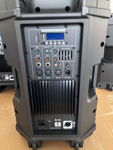 Активная АС, 15" (катушка 3") + 44мм (1,75"). Раздельные усилители класса АВ (TOSHIBA SA1943*2SC5200), макс 1200Вт (1000Вт + 200Вт), опционально - до 1600Вт, USB / SD / Bluetooth / FM + функция внутренней записи, поканальный ревер, пульт. 5-ти полосный эквалайзер, ВЕНТИЛЯТОР, транспортные колеса